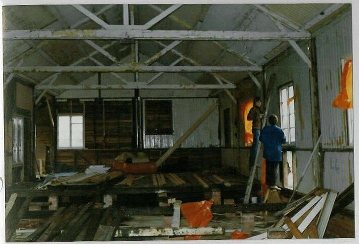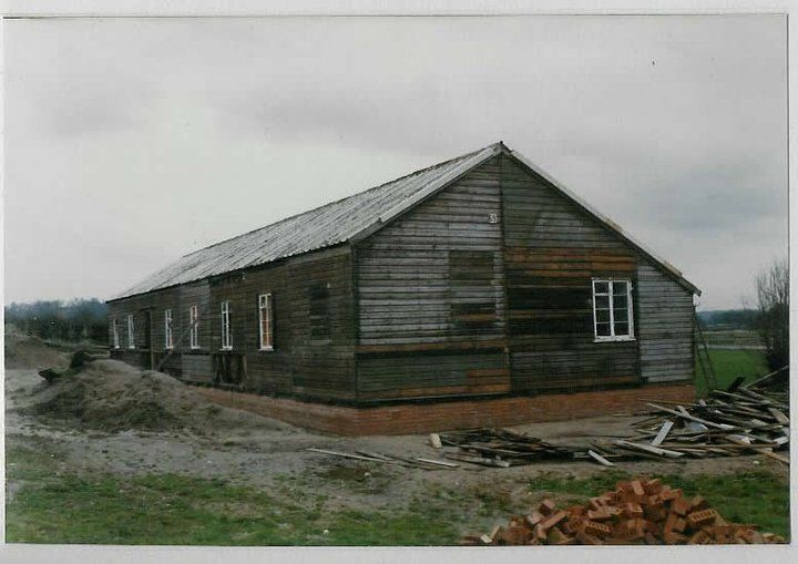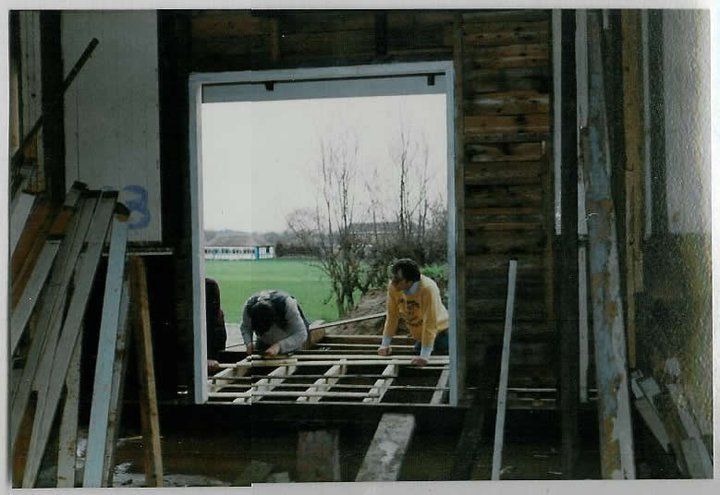 With the 70s being even sparser, we turn to the 80s. This was quite a decade for the club. The trend of league positions in the 70s shows an upward curve, indicating the the club was growing stronger. This was borne out in the 80s as in 1980, having spent many years based in a pavilion in the corner of the ground between the houses and the field, the club members went about building their own pavilion! This ambitious project took four years and was indeed timebound as the Club's Centenary was fast coming round in 1984 and would have been something of a damp squib if the events were hosting on a building site. Recent history tells us that the project succeeded and the Centenary was a huge success. The next set of photos show how the pavilion began with a significant cut into what was a croft and then the various stages of putting together and significantly modifying barracks number 69 from an army camp in Shropshire.1984, The Centenary
